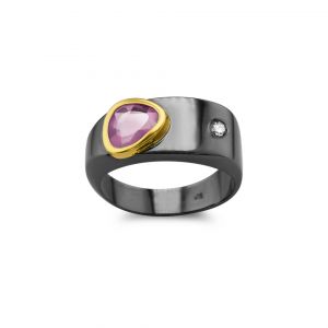 Unique ring Klimt from collection Liberty combines yellow gold and black rhodium with stunning sapphire and eternal diamond. Each piece is one-off, you will receive photo documentation of the ring to confirm your purchase.